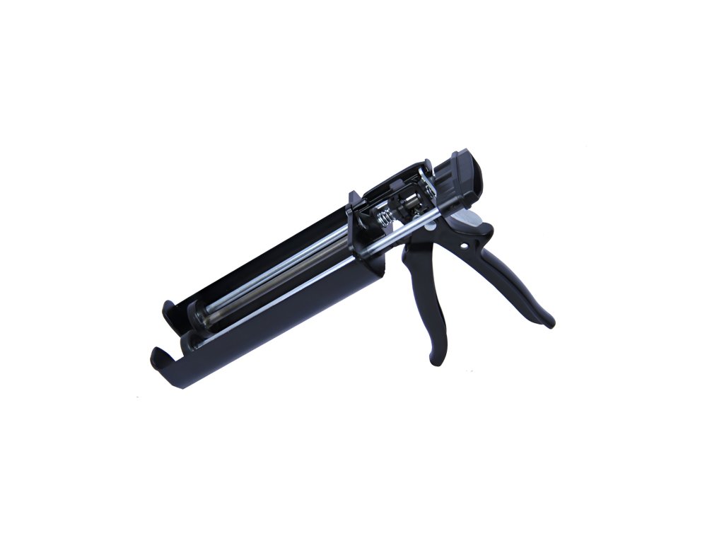 manuální aplikační pistole je určena pro přesné nanášení lepidel a tmelů. Aplikační pistole je kompatibilní s dvousložkovými produkty v kartuších o objemu 400 ml s mísicím poměrem 2:1. Díky otevřené skeletové konstrukci je zařízení lehké, dobře se drží a umožňuje pohodlnou práci i při delším používání.